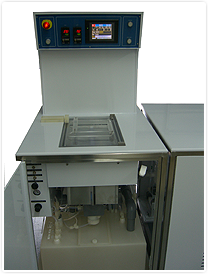 A separator on the discharge port extracts the gases and drains the water. A flow switch on the water input line cuts off the pump if the supply is . insufficient. A non-return valve on the vacuum port prevents back-siphoning of city water to the etch module if the pump stops.